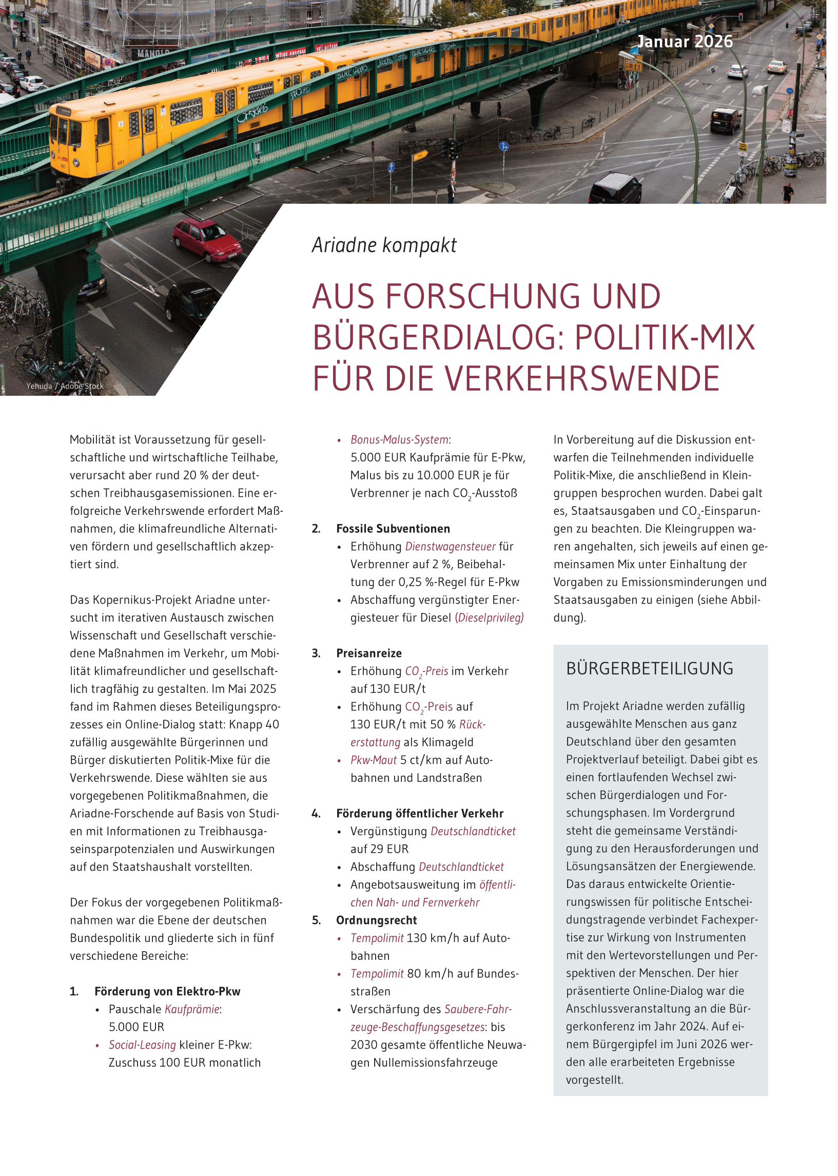 Ariadne kompakt: Aus Forschung und Bürgerdialog – Politik-Mix für die Verkehrswende