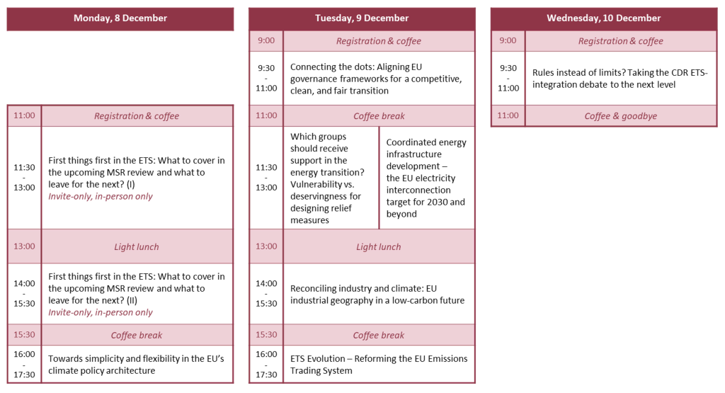 • Dienstag, 9. Dezember: Diskussionen über Wettbewerbsfähigkeit und Dekarbonisierung, die Zukunft der EU-Industrie, die Entwicklung der Energieinfrastruktur sowie die sozialen Auswirkungen des grünen Wandels.