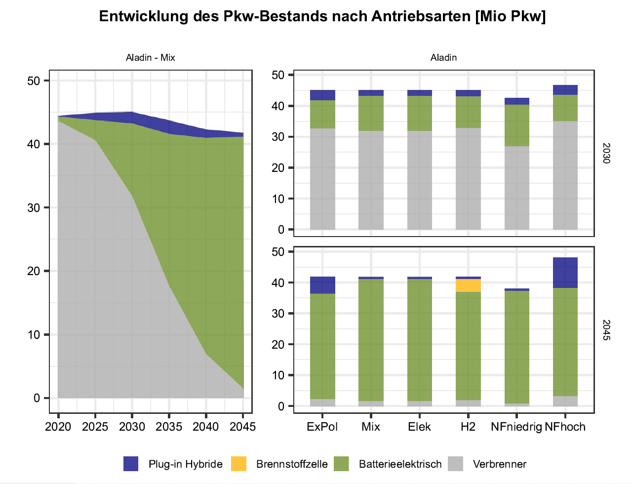 Das Kopernikus-Projekt Ariadne veröffentlichte im März 2025 einen Report, der unterschiedliche Szenarien zur Erreichung der Klimaneutralität untersucht. Aus den Szenarien lassen sich robuste Erkenntnisse über mögliche technologische Pfade, Investitionsbedarfe und Kosten der Verkehrswende ableiten. Die unterschiedlichen Szenarien sind ausführlich im Bericht beschrieben.