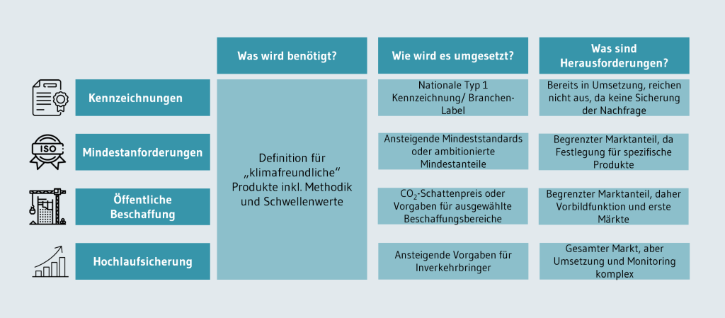Abbildung 3: Instrumente zur Schaffung von Leitmärkten für klimafreundliche Grundstoffe. Quelle: eigene Abbildung