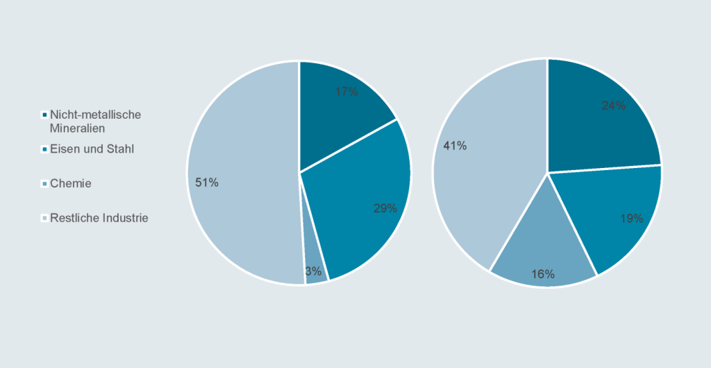 Abbildung 4: Anteile der Subsektoren an den Industrieemissionen in Deutschland (links) und der EU