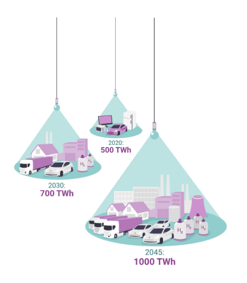 | Stromerzeugung aktuell (TWh) | 2030 | 2045 | 2030 | 2045 |